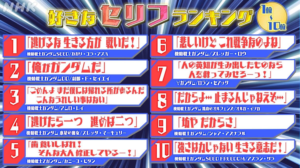 NHKガンダム沼「好きなセリフ」ランキングTOP10発表!1位は…?