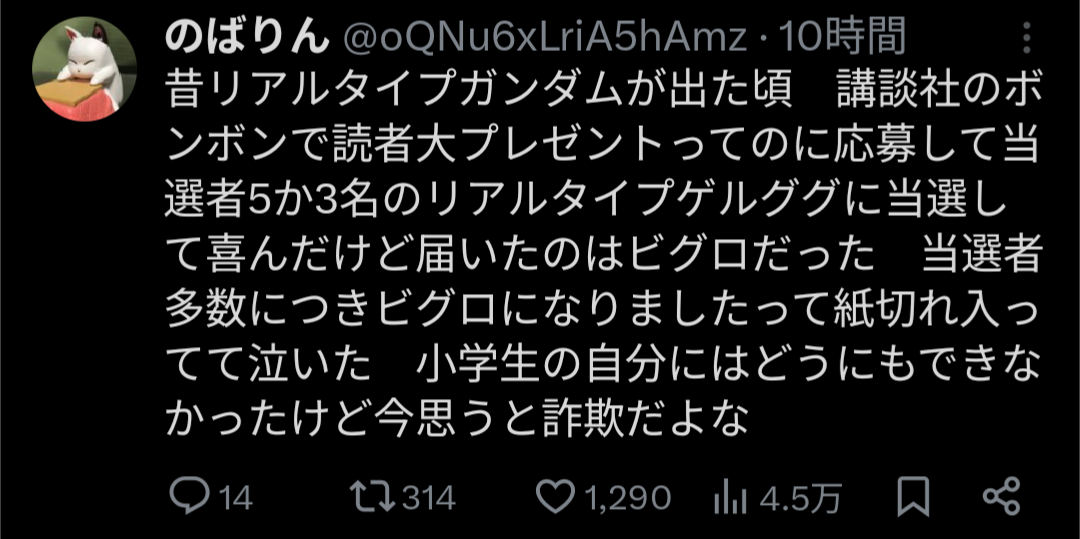 【画像】ボンボン「応募者にリアルタイプゲルググプレゼント!」→応募した結果…